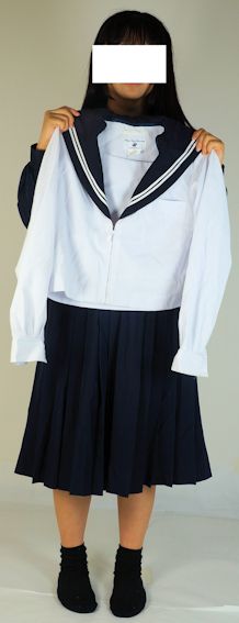 ●冬セーラー服・14号・サイドファスナー・(肩幅41・胸囲107・身丈48・袖丈57)●夏セーラー服・フロントファスナー・(肩幅40・胸囲98・身丈46)●冬スカートW66L41※サージ●スカーフ付 ●価格: |